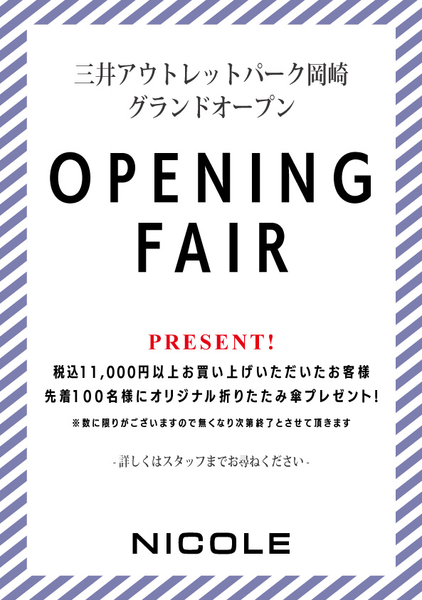 「オープン情報」11/4(火)三井アウトレットパーク岡崎 NICOLE